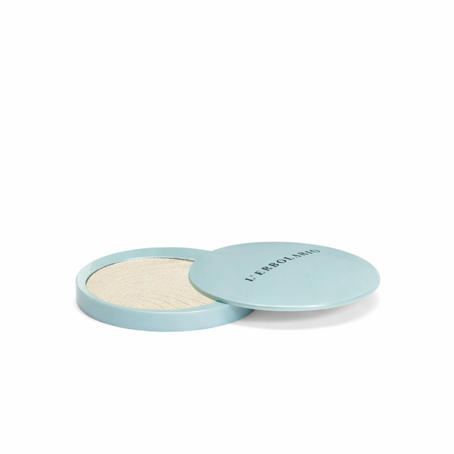 Polvere Illuminante: distribuire con pennello o dita su zigomi, décolleté e punti luce del viso.