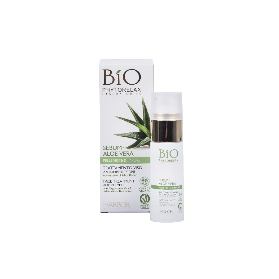 Sebum Aloe Vera Trattamento Viso Bio Phytorelax è un trattamento mirato anti-imperfezioni che combina l’azione concentrata di un siero con la sensorialità di una crema, grazie a una texture cremosa, confortevole e ad assorbimento rapido.