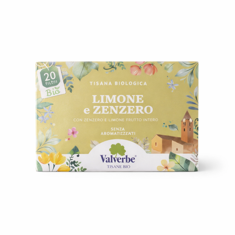 Tisana biologica Valverbe a base di limone e zenzero, dal gusto fresco e leggermente speziato. Naturalmente senza glutine, ideale per una pausa rigenerante in ogni momento della giornata.